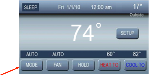 Please immediately change the thermostat mode to the "AUTO" mode (follow the instructions in the attachment to change to AUTO mode). Next, following the instructions in the attachment, please locate your thermostat serial number and software version. Write down the thermostat serial number and software version. If your thermostat software version is a number less than 2.00, the serial number will not be displayed on the screen. If you have internet access, you can go to www.myobservercomfort.com/non-wifi-safety to report your thermostat software version and serial number. If you do not have internet access, please call the ICP brands customer care number at 800-649-4706. They can determine if your thermostat needs to have a software update based on the information you provide them. They can also help you locate the software version if necessary.